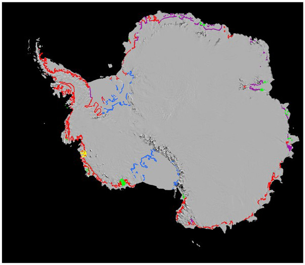 This sample image is from the MEaSUREs Antarctic Grounding Line from Differential Satellite Radar Interferometry (nsidc-0498) available from the NSIDC DAAC. This data product provides high-resolution mapping of grounding lines in Antarctica from 1992 to 2014 — Credit: AIV