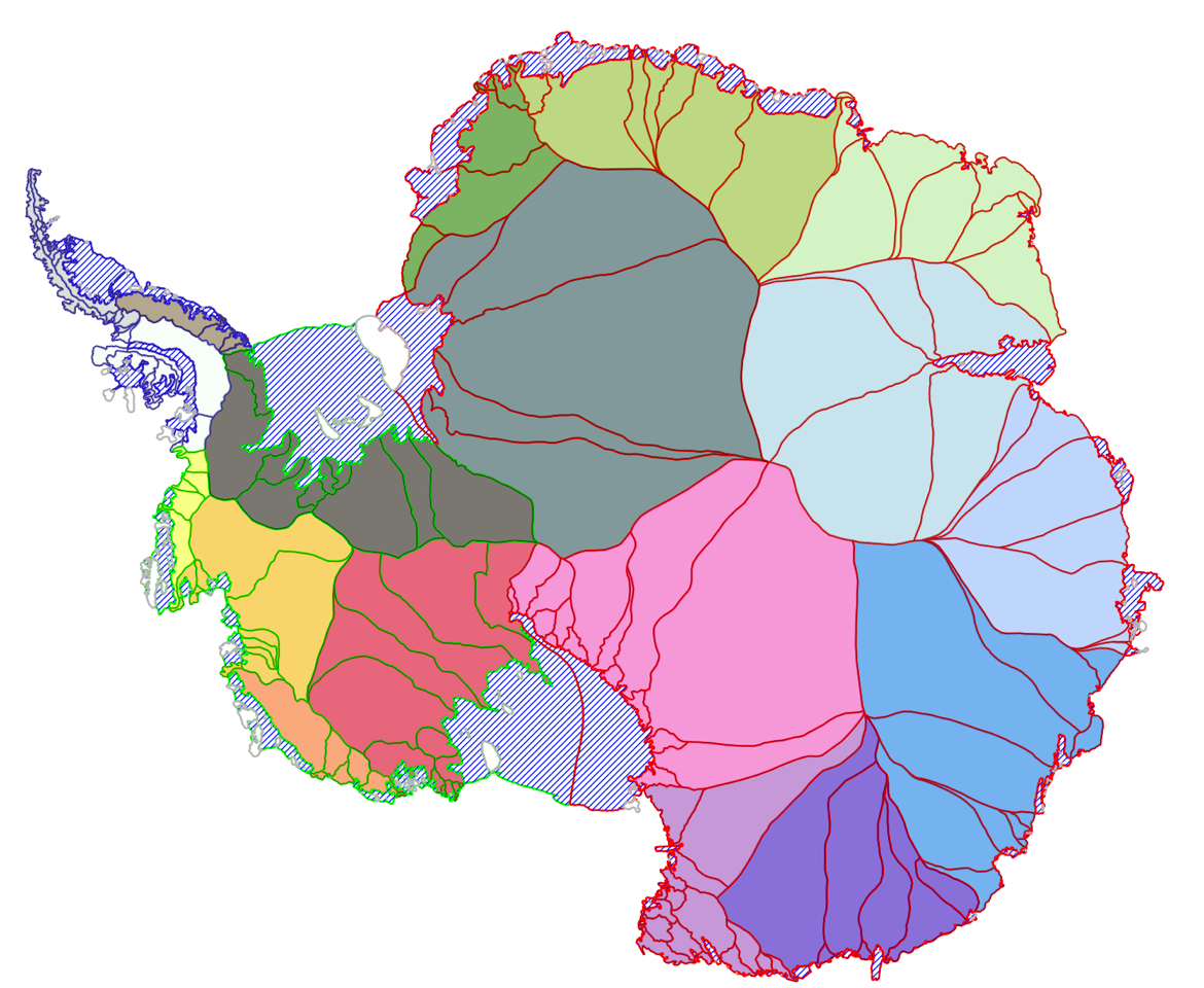 This sample image is from the MEaSUREs Antarctic Boundaries for IPY 2007-2009 from Satellite Radar (nsidc-0709) available from the NSIDC DAAC. This data product provides maps of Antarctic ice shelves, Antarctic basins, and the Antarctic coastline. — Credit: AIV