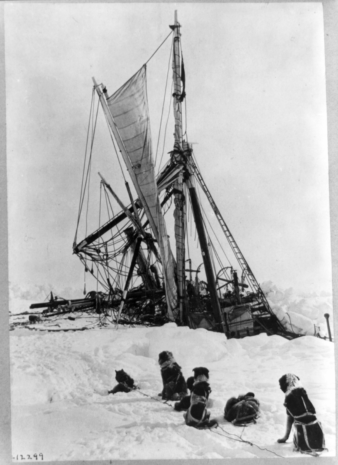 The crew found that crossing the ice was impossible, even with the help of their dogs. The ice was full of ridges (piles of ice) that they had to climb over, and the wet snow was sticky, making it even more difficult to drag the lifeboats. After a couple of attempts to cross the ice, the crew built a small camp on the ice and waited for the drift of the ice to carry them northward. They killed the dogs because their food supply was limited, and they could not spare extra for the dogs. Additionally, the dogs themselves provided extra meat for the crew, who did not know how long they would be stranded at their camp.