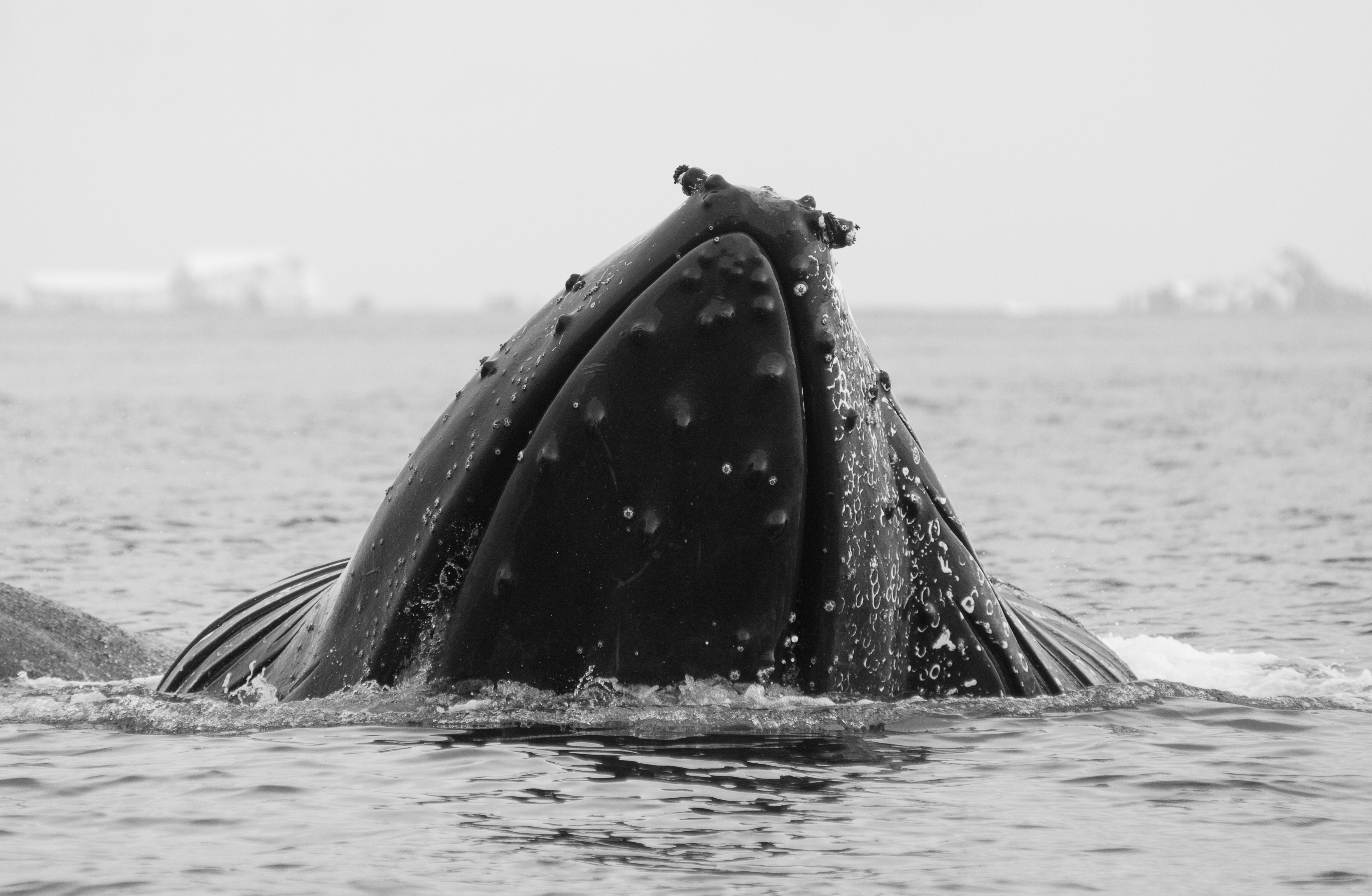Though algae lives on ice, ice sheets host few animals. Flora and fauna in Greenland and Antarctica is present primarily at and beyond the ice sheet edges. One way that ice sheets help to support local ecosystems is via freshwater runoff that can be important for transporting nutrients and may play a role in establishing a food chain that supports larger mammals. In Greenland, large mammals like polar bears, seals, and walruses, navigate between the sea ice and shores. On land, musk oxen, caribou, and the white Arctic fox are some of the larger roaming animals. The waters surrounding Greenland are also home to humpback whales and narwhals. Where there is land, there are birds. About 60 species of birds call Greenland home, with another 20 as regular migrants. Among the most striking species is the white-tailed eagle, or nattoralik in Greenlandic. For more information on seals and polar bears, read about sea ice and wildlife.