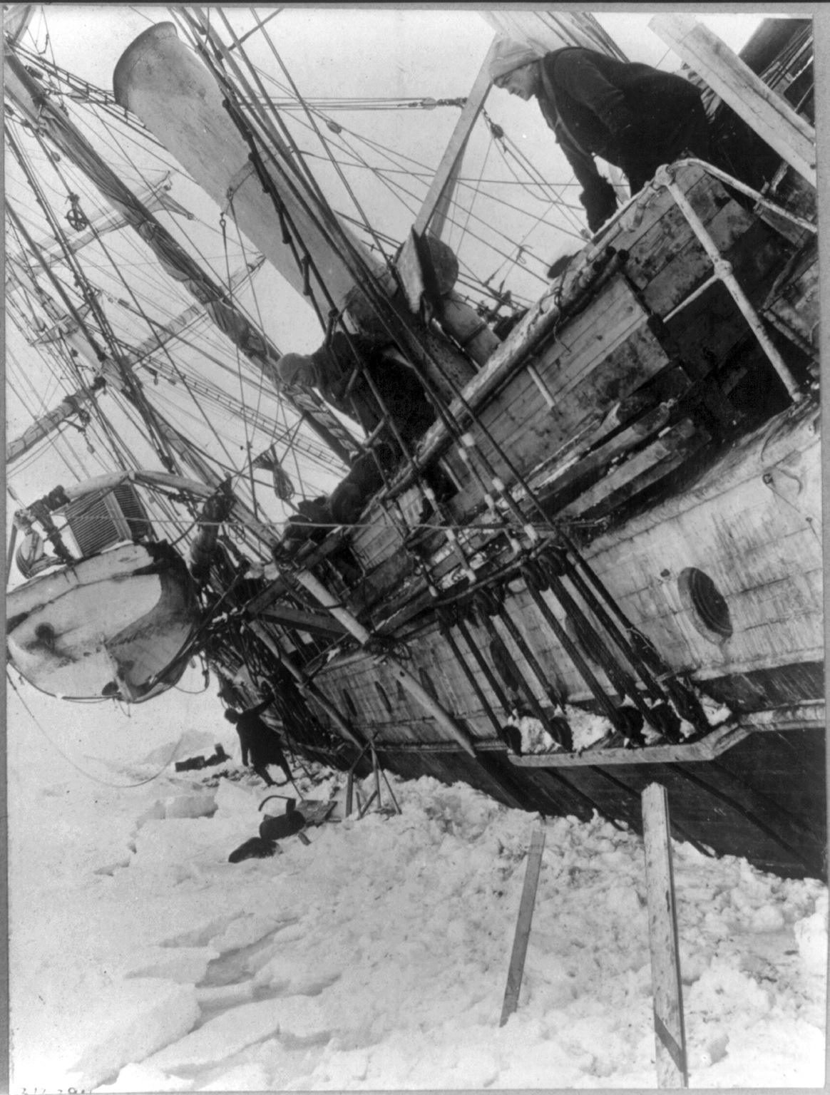 Shackleton's ship, the Endurance, sailed into the Weddell Sea in 1914 with a crew of 28 men, several dogs, and one cat—Mrs. Chippy (who was actually male). They encountered more sea ice than expected, and the Endurance became trapped in the ice on January 18, 1915. For several months, the ship drifted with the ice until it was finally crushed by the ice. The crew abandoned the ship on October 27, 1915, and began walking across the ice, pulling three lifeboats along. They kept the dogs to help pull the lifeboats, but Mrs. Chippy had to be killed after they abandoned the ship because the crew could take with them only what was absolutely necessary.