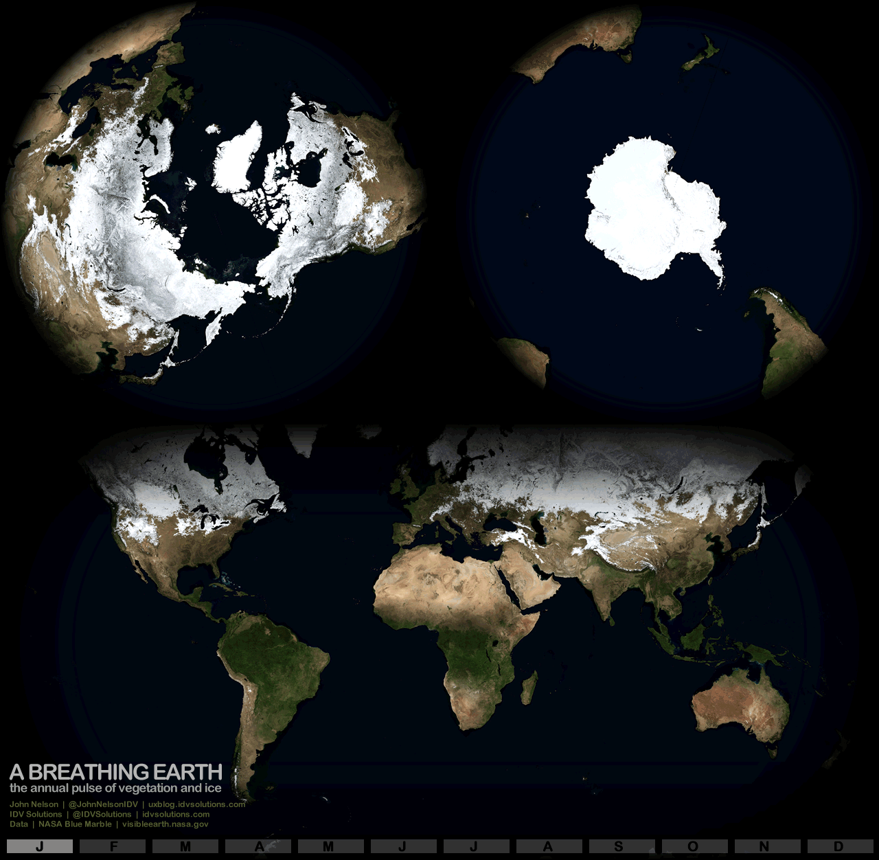 This animation shows the cycle of global vegetation and snow through one year. — Credit: John Nelson/IDV Solutions based on NASA data