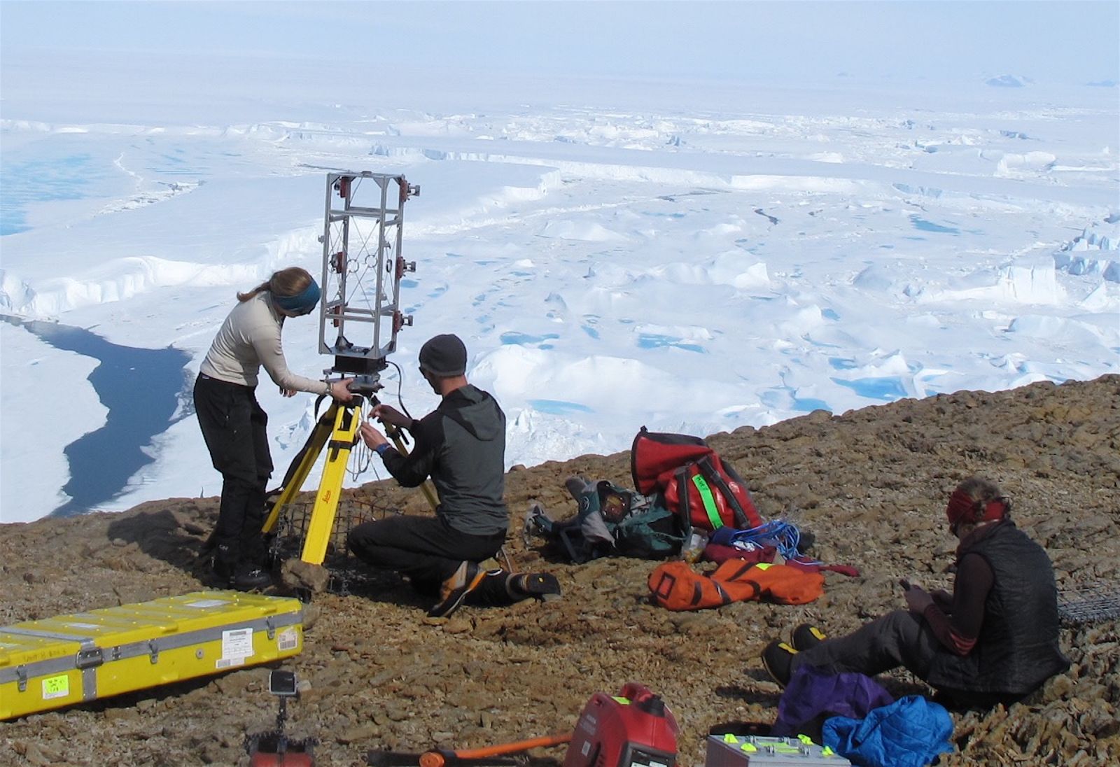 The end of February marks the peak of Antarctica’s summer. Scambos and the research team had a strong suspicion that the Pacific’s El Niño conditions would bring a warm summer to the Peninsula. Cape Disappointment, the selected vantage point, offered an excellent view of Scar Inlet. But instead of a collapse, the researchers were given an opportunity to study another process up close—how the new fast ice is affecting the shelf.