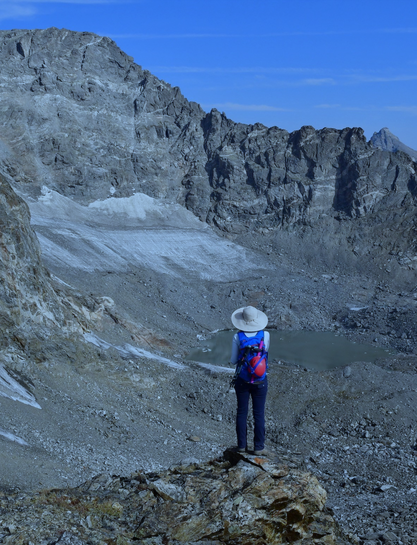 In September 2021, a gaggle of NSIDC employees visited Colorado’s Arapaho Glacier, camping overnight, and taking measurements and photos. One snapshot of the trip featured NSIDC’s Ann Windnagel surveying the glacier, by that point a shriveled ghost of its former self.