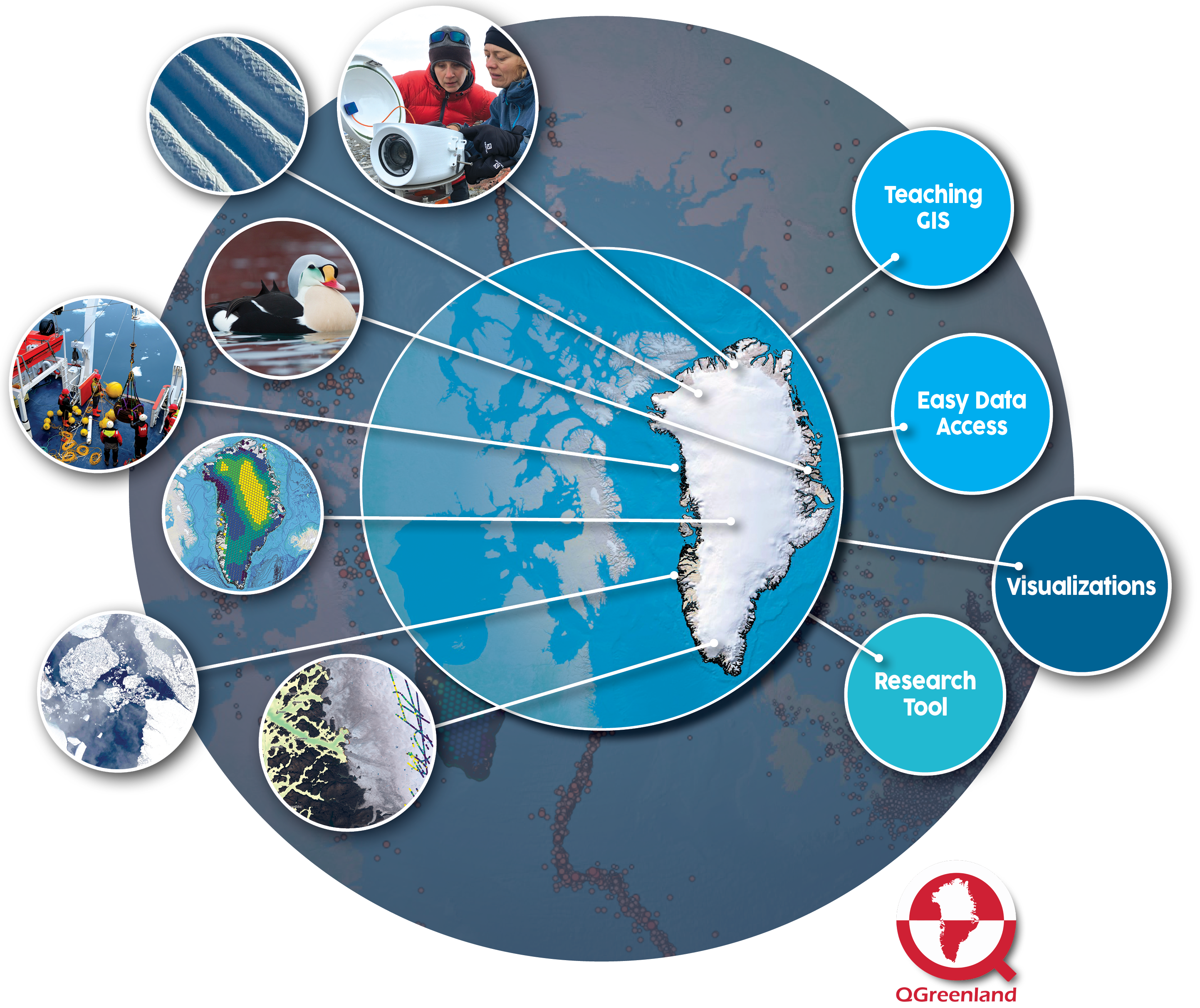 The better we understand the connections among environmental, biological, and human changes in Greenland, the more successfully we can mitigate the negative effects of rapid environmental change. QGreenland is a free and open-source mapping tool that can be used to better understand and research the changes occurring in Greenland and the connections among them.