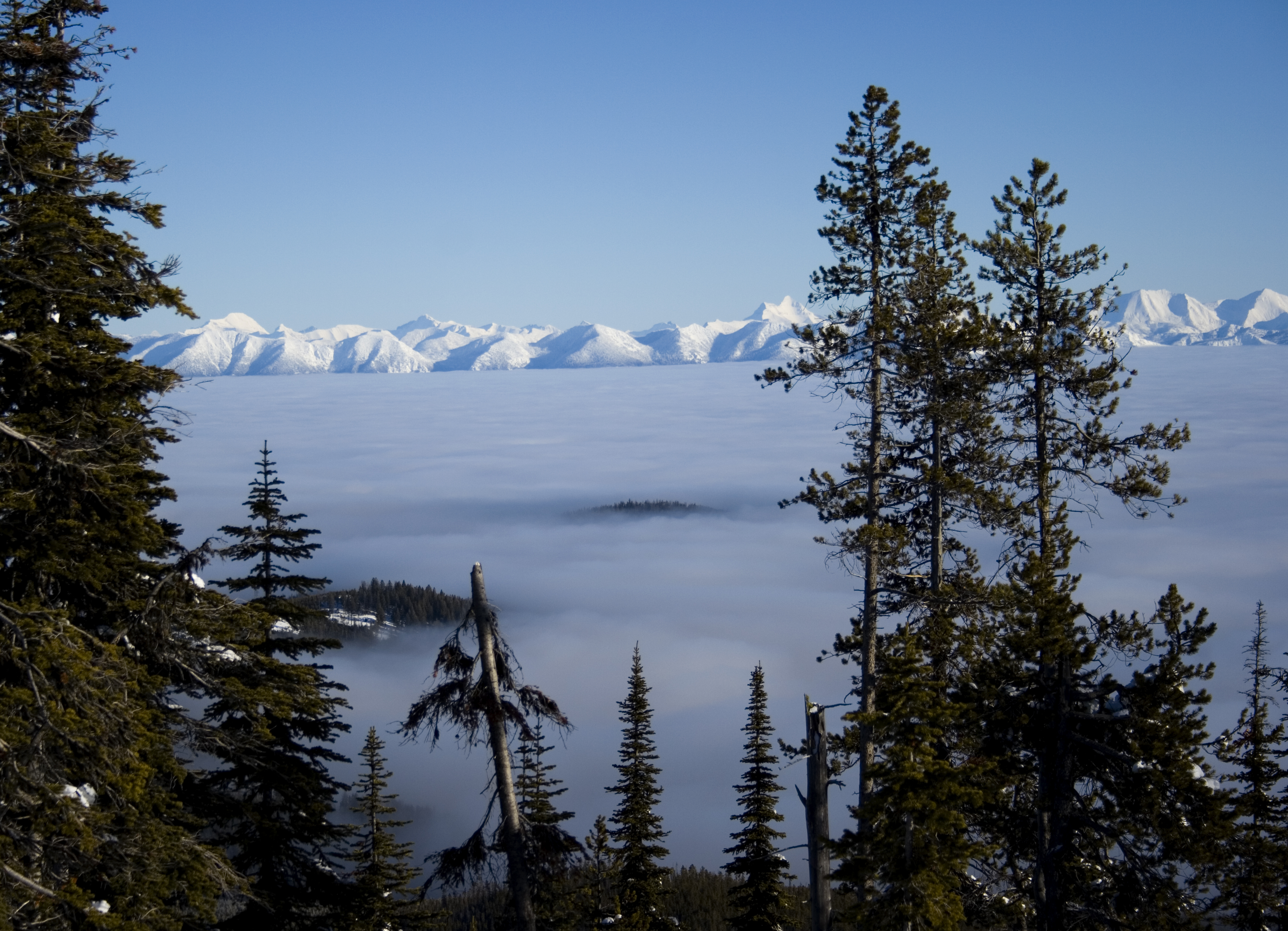 Mirages and other optical illusions occur in the Arctic because of special atmospheric conditions that bend light. A superior mirage occurs when an image of an object appears above the actual object. Superior mirages sometimes appear in the Arctic because of the weather condition known as a temperature inversion, where cold air lies close to the ground with warmer air above it. Since cold air is denser than warm air, it reflects light towards the eyes of someone standing on the ground, changing how a distant object appears. Superior mirages can produce a few different types of images: Distant objects can appear to float high above their actual position, for example a boat can look like it is floating in the sky, or an object below the horizon can become visible. This is known as a looming type of superior mirage. Superior mirages can also distort images so that the object appears stretched and elevated, called towering.
